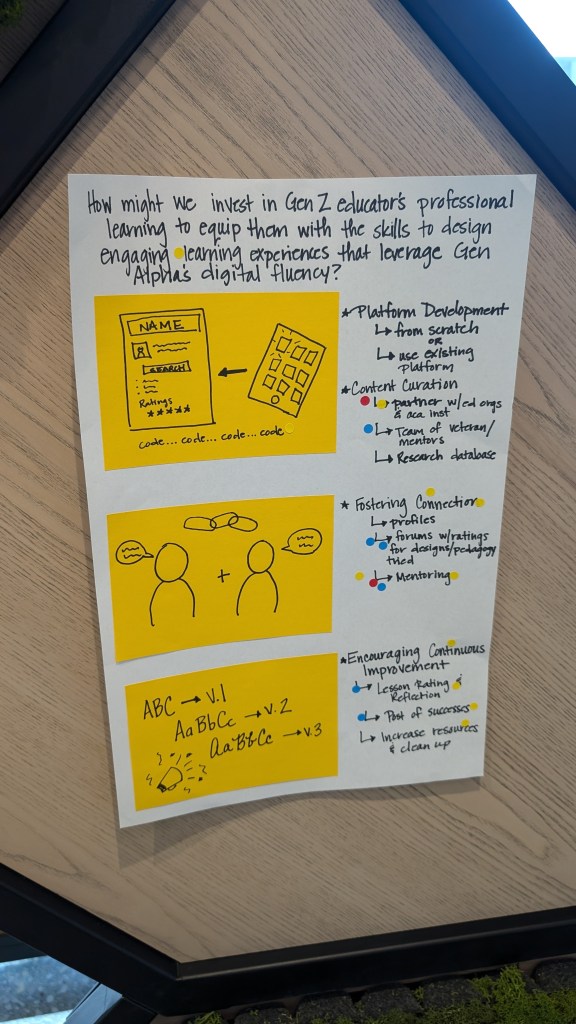 For this round of applications, Google partnered with various organizations to help participants focus on the type of problem they wanted to look at. I selected the partnership with Ted-Ed that highlighted teacher and student voices. Eventually, I found my driving question: How might we invest in Gen Z educators to help them engage their Gen Alpha students? which brought together my passions of generational study, new teacher support, and digital tools for learning. That passion must have shone through because I was accepted and on my way to Chicago!